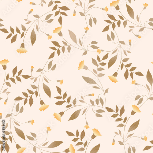 Seamless floral pattern based on traditional folk art ornaments. Colorful flowers on color background. Scandinavian style. Sweden nordic style. Vector illustration. Simple minimalistic pattern