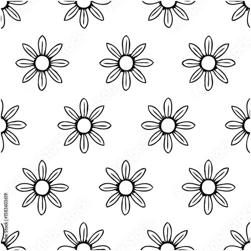 Seamless Floral Pattern: Elegant Black and White Daisy Design for Versatile Applications