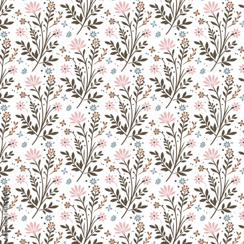 seamless floral pattern with intricate garden inspired leaves and delicate stylized botanical elements for textiles