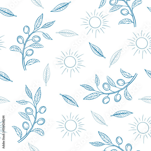 Seamless floral pattern with olives on transparent background for fabric, wrapping paper, kitchen and restaurant decor