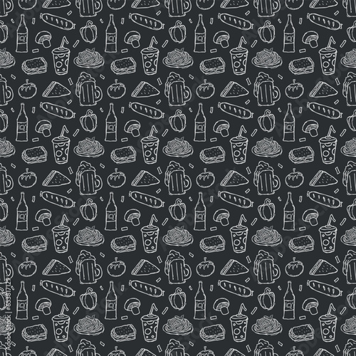 Seamless food pattern. Drawn doodle food background