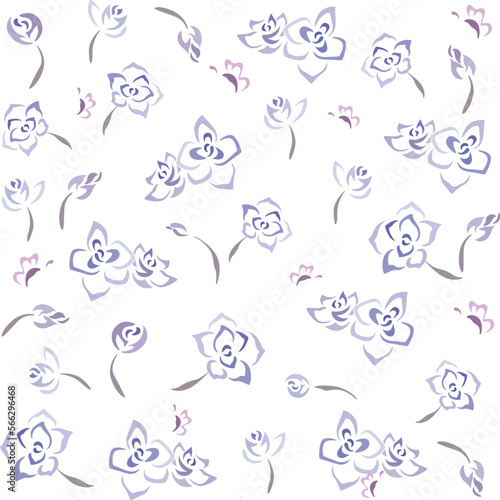 Seamless fresh floral pattern with pretty purple flowers and tropic leaves on a white background. Vector elegant template for fashion prints. Modern floral background. - Vector illustration.