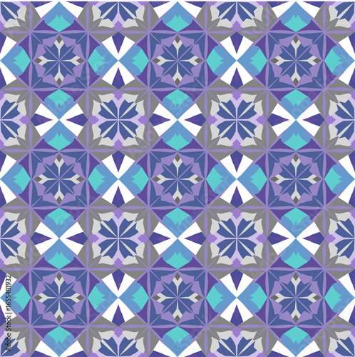 Seamless Geometric Floral Pattern in Blue and Purple Tones for Wallpaper, Fabric, and Tiles Vector