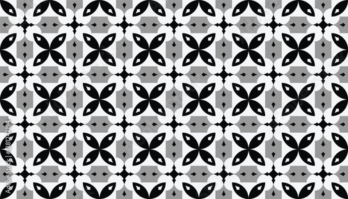 Seamless geometric floral vector pattern in black and gray tones. Elegant symmetrical design suitable for backgrounds, wallpapers, and textile prints