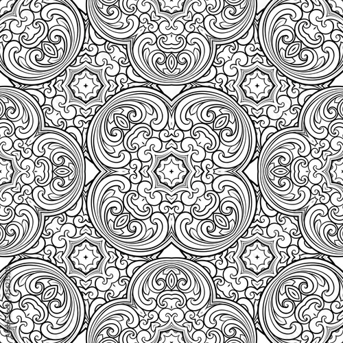 Seamless geometric line pattern in eastern or arabic style. Exquisite monochrome texture. Black and white graphic background, lace pattern