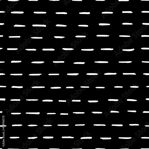 Seamless geometric pattern with abstract white brush strokes on black background.