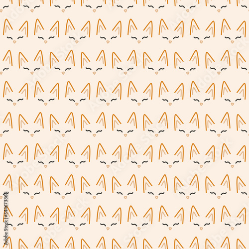 Seamless geometric pattern with fox face on pink background in art cartoon style. Vector print for fabric background