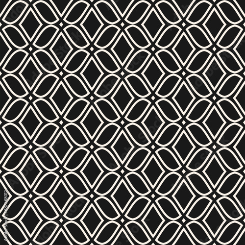 Seamless geometric pattern with thin curved lines in black and white. Elegant minimal oriental arabesque lattice design. Modern vector mesh background texture. Simple repeat ornament for decor, print