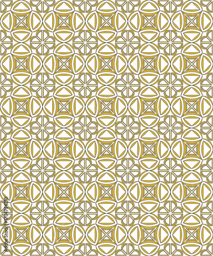 "Seamless Golden Floral Pattern on White Background for Wallpaper, Tiles, Fabric, and Geometric Design"