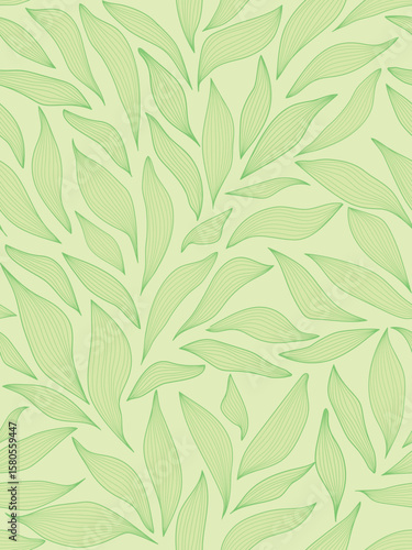 Seamless green floral background with leaves. Hand drawn minimal abstract organic shapes pattern. Delicate vector light green abstact pattern with green leaves.