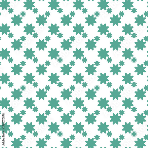 Seamless Green Floral Pattern With Stylized Geometric Shapes on White Background