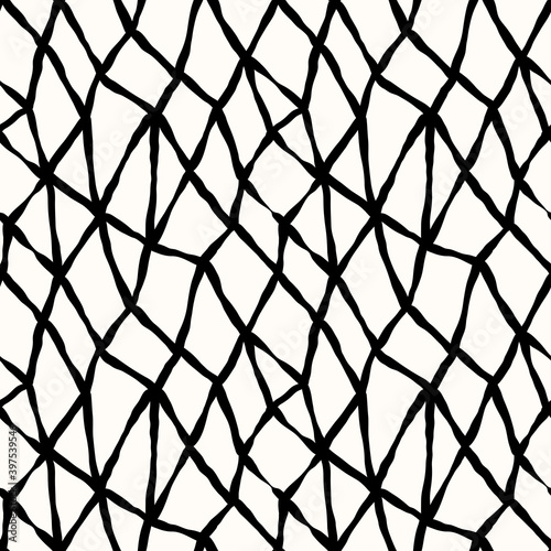Seamless hand drawn ink pattern. Creative endless background with blots. Abstract striped texture with bold monochrome lines