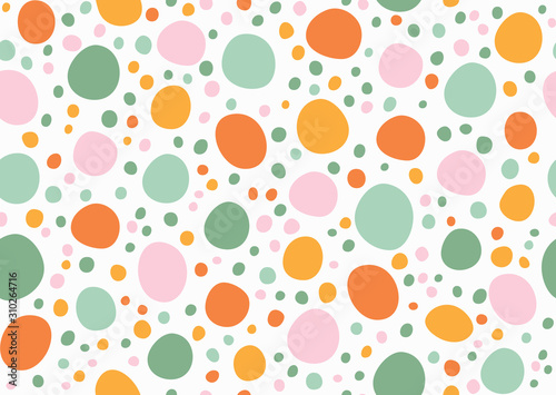 Seamless hand drawn multicolor polka dots pattern. Vector confetti background on white