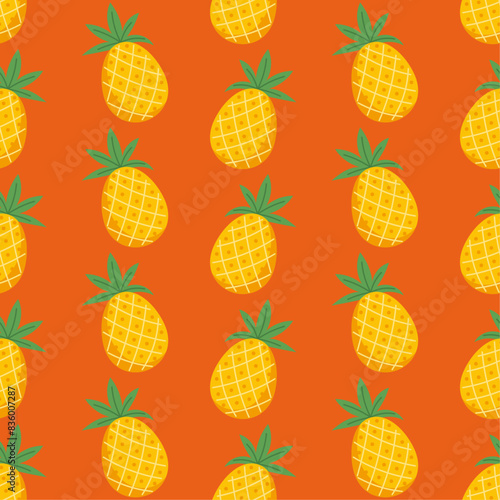 Seamless Hand Drawn Pattern Pineapple on Orange, Tropical Vector Pattern
