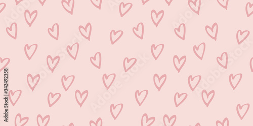 Seamless heart hand drawn pattern in vector illustration. Rose and pink nursery colors cute simple design for scrapbooking wallpaper textile craft paper. Muted illustration colors for aesthetic.