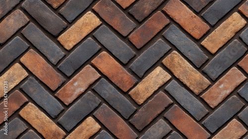 Seamless herringbone Dutch brick pattern with alternating rows of dark and light brown bricks. Uniform size, repeating texture
