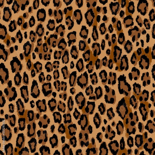 Seamless jaguar, leopard, cheetah, panther skin pattern. Animal beige and brown background with small spots