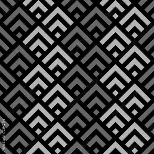 Seamless japanese mountains pattern. Repeated chevrons, diamonds, angle brackets background. Squama ornament. Scales image. Ancient window tracery motif. Digital paper for textile print. Vector art