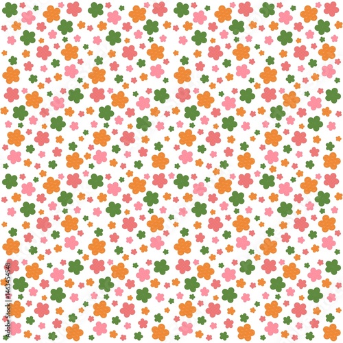 Seamless Japanese Plum Blossom Pattern with Spring Floral Motif in Pink, Green, and Orange