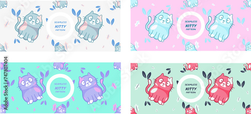 seamless Kawaii Cats vector illustration Smiling Kitty, cute and round-faced cat