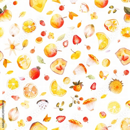 Seamless kids pattern with watercolor sweets drawing abstract illustration on white background
