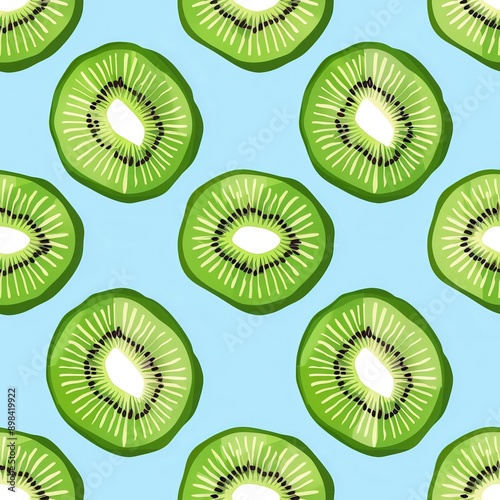 Seamless kiwi fruit cut slice pattern background