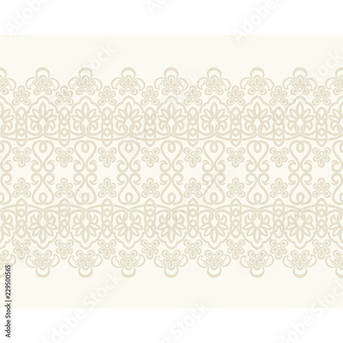Seamless light background with beige floral lace pattern, design element set. Vector retro illustration. Ideal for printing on fabric or paper.