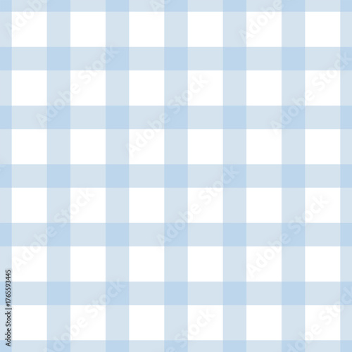 Seamless Light Blue Gingham Pattern Background. Classic Two-Tone Pastel Plaid Check Design for Fabric, Textile, Wallpaper, and Picnic Decor.