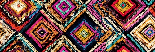 Seamless Linen Knit Textile Background with Colorful Geometric Patterns And Shapes