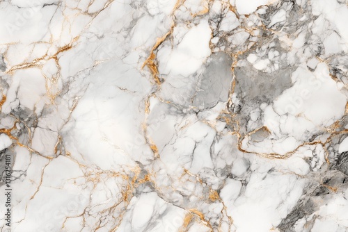 Seamless marble surface featuring a mix of white, gray, and gold veining. The intricate patterns create a luxurious and elegant appearance, suitable for interior design.