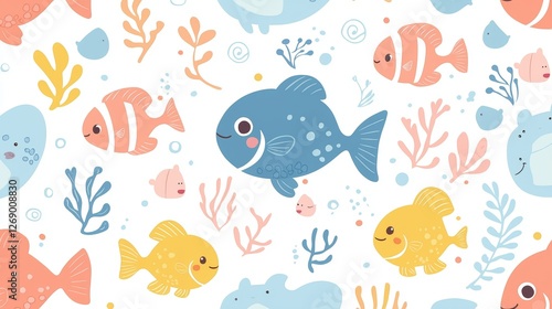Seamless Marine Life Pattern with Cute Fish and Sea Creatures