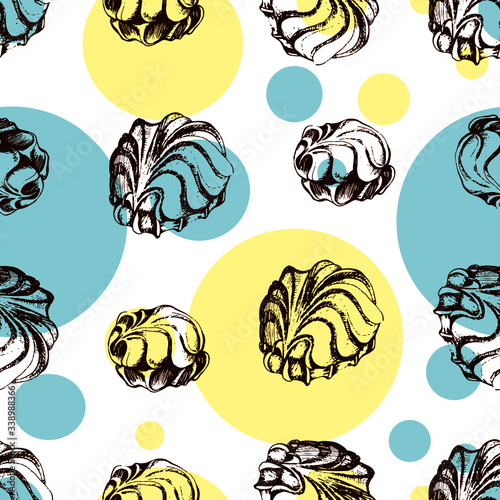 Seamless marshmallow pattern, fun, cute. For fabric, Wallpaper. Vector graphics.