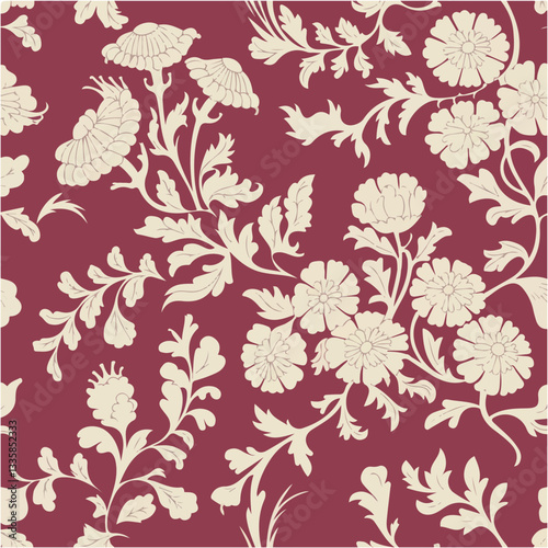 Seamless Meadow Flowers Pattern with Daisy and Paisley Shapes