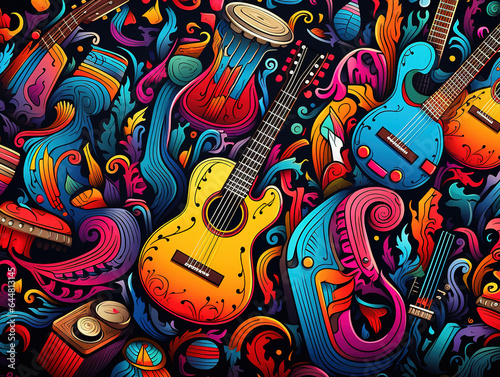 Seamless musical pattern, hand drawn, doodles. Generative Ai