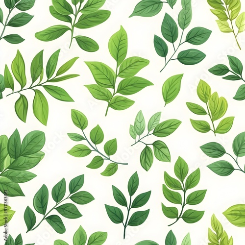 Seamless Natural Leaf Pattern on White Background