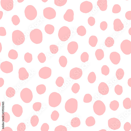Seamless neutral polka dots pattern. Gentle pink hand-drawn circles on white background. Abstract Random points ornament. Vector rose illustration for wallpaper, fabric, print, wrapping paper, textile