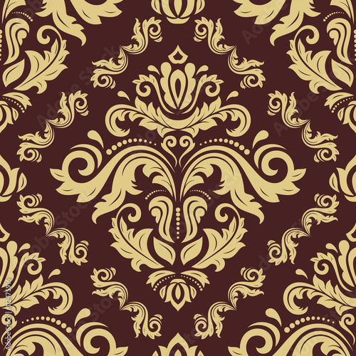 Seamless oriental ornament in the style of baroque. Traditional classic vector pattern. Brown and golden pattern