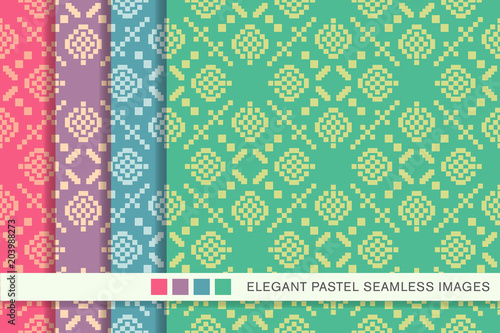 Seamless pastel background set Square Mosaic Cross Check Geometry