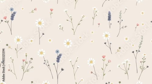 Seamless Pastel Floral Pattern with Daisies and Lavender