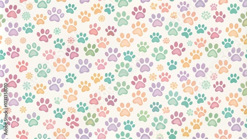 Seamless pastel pattern featuring cat and dog paw prints, pastel, seamless, pattern, cat, dog, paw, prints, cute, animals