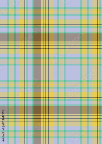 Seamless pastel plaid pattern in yellow, light blue, and brown. Perfect for textile design and backgrounds.