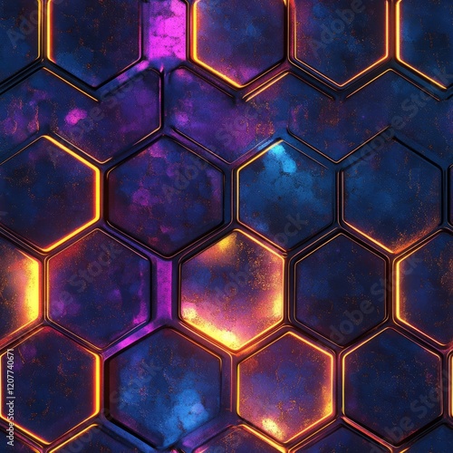 Seamless Pattern - Abstract Hexagon Pattern with Glowing Edges