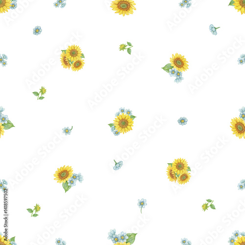 Seamless pattern sunflower hand drawn watercolor painted .You can Edit background from eps file