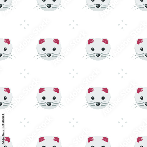 Seamless Pattern Abstract Elements Animal Ermine Head Wildlife Vector Design Style Background Illustration Texture For Prints Textiles, Clothing, Gift Wrap, Wallpaper, Pastel