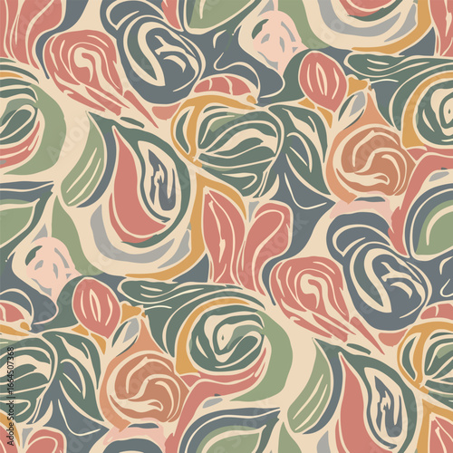 Seamless Pattern, Abstract floral pattern with organic shapes and earthy color palette design Stock royalty free image.