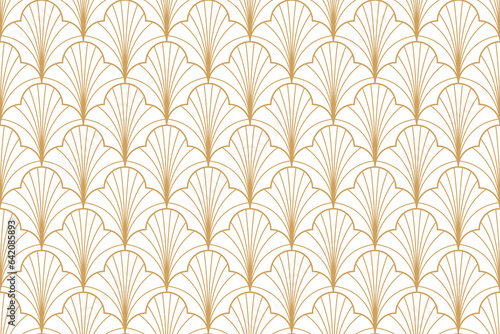 seamless pattern art deco with fan shape and lines in blue and gold color, luxury repeat background ,png illustration.