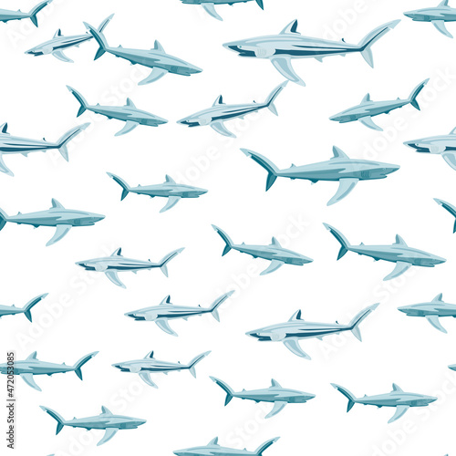 Seamless pattern Blue shark isolated on white background. Light gray textured of marine fish for any purpose.
