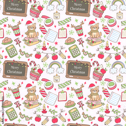 Seamless Pattern Christmas Pencils Festive Doodle isolated on background