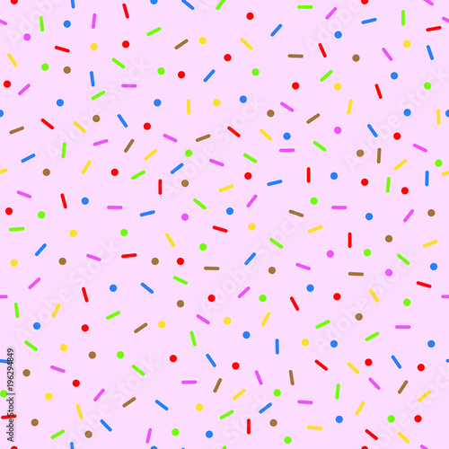 Seamless pattern: colorful glaze and many decorative bright sprinkles texture design.