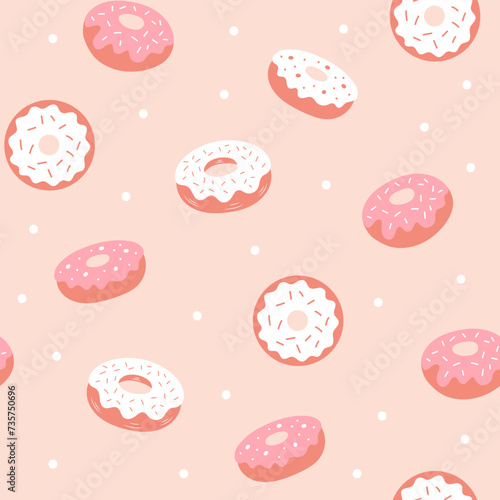 Seamless pattern, donuts on a pink background. Vector illustration.